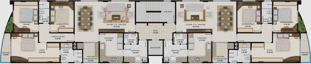 Edifício residencial de sete pavimentos em agradável localização no Alto da Glória, oferecendo apartamentos de três quartos com área total de 280m2, com uma vaga de garagem, além de duas coberturas de 330m2.